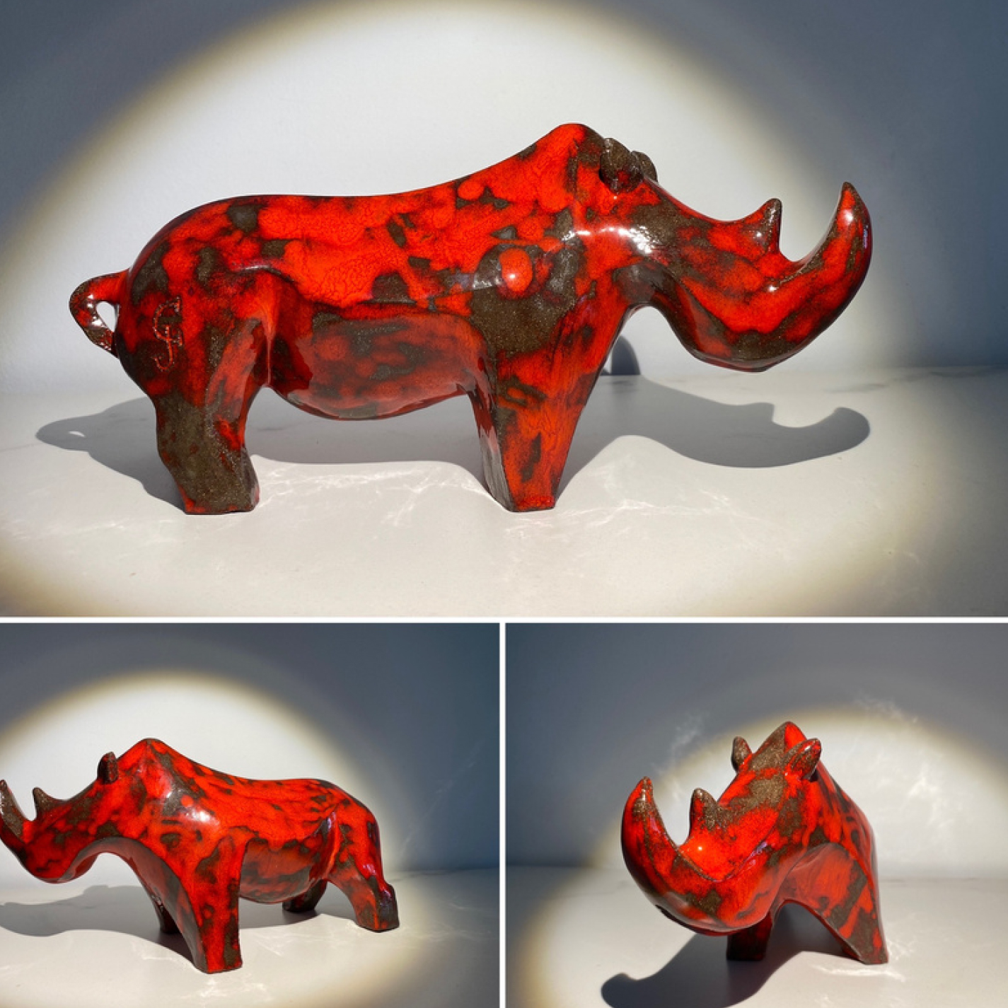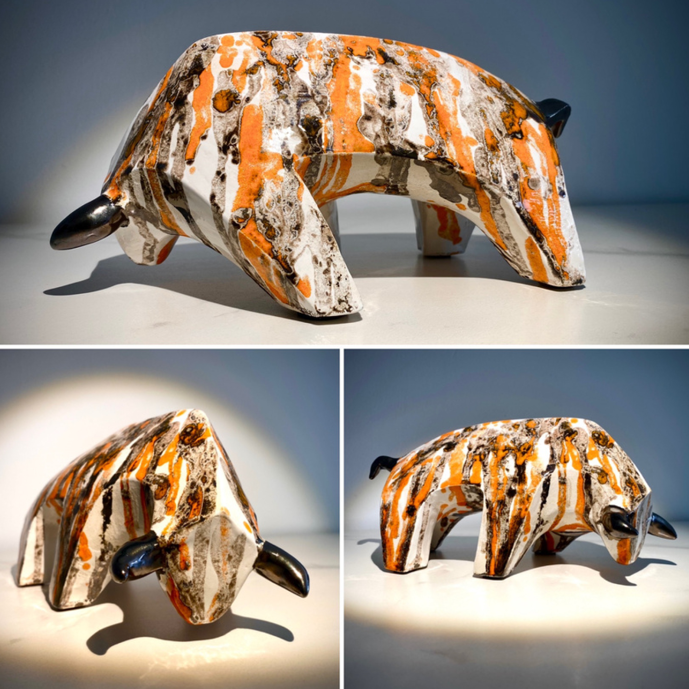 Elle utilise le grès et pour les finitions elle adapte son choix selon les pièces : émaillage, patine avec des pigments ou oxydes ainsi que le RAKU (technique japonaise).