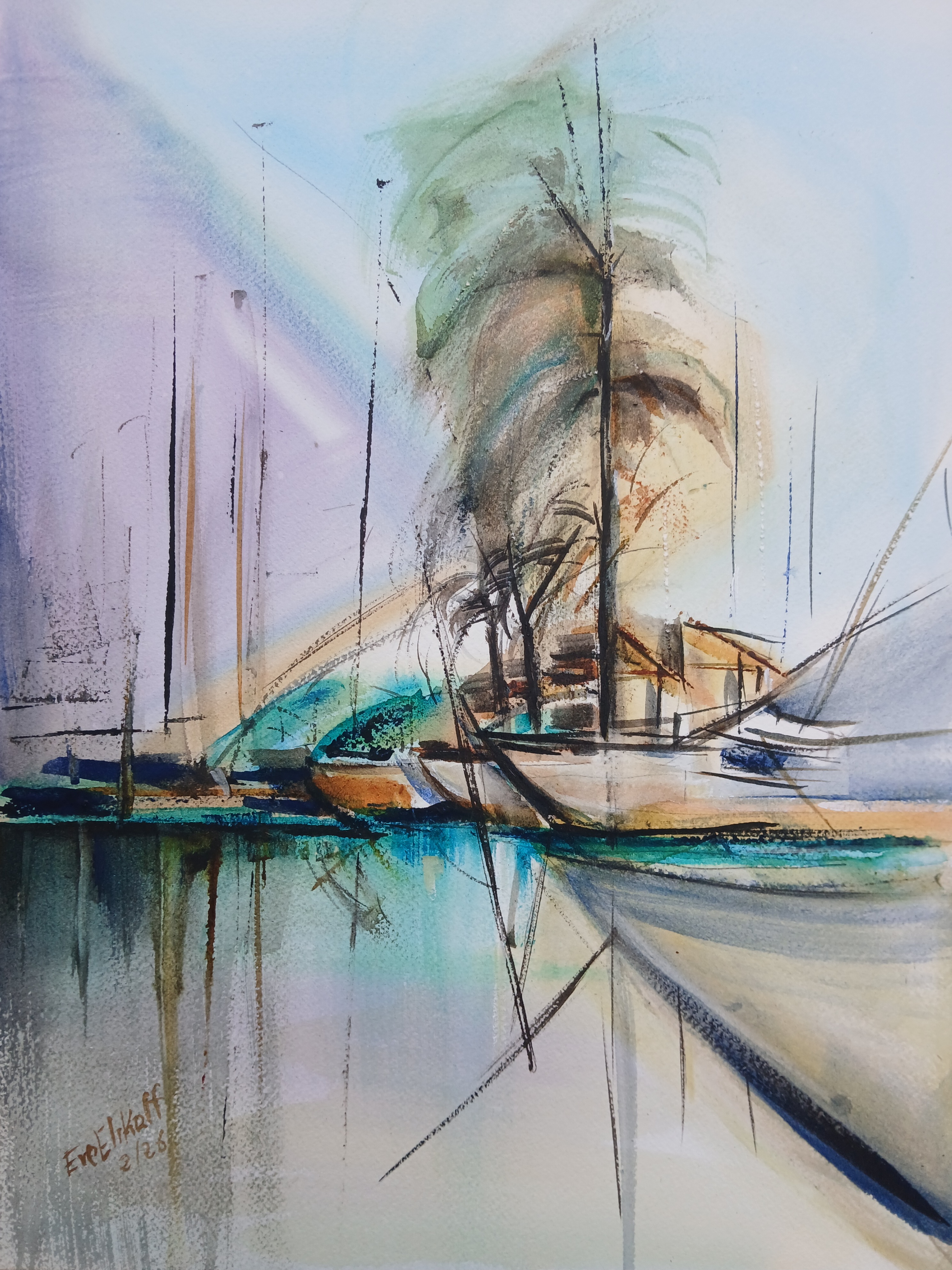 AquarelleArtiste peintre professionnelle, Eve ELIKOFF travaille l'aquarelle pour exprimer ses émotions face à la beauté de la nature.