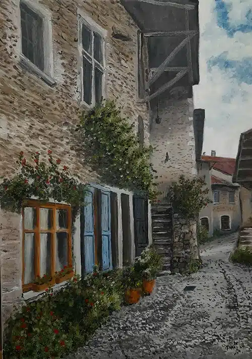 Michel Foray, un artiste entre tradition et modernité. Originaire de Pérouges, cité médiévale au charme intemporel, Michel Foray nourrit depuis toujours une passion profonde pour le dessin et la peinture. Longtemps adepte de l'aquarelle, il a perfectionné son art au sein de l'association des peintres de sa ville natale.
